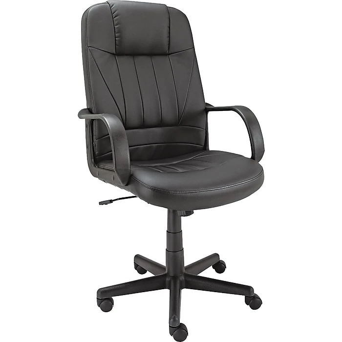 Versatile and elegant, the Alera Modern Executive Chair in a black shade is an ideal addition to your office space. Upholstered with high-quality leather, this high-back executive chair adds a fresh look to your workspace. Its pneumatic seat height adjustment mechanism lets you regulate the seat height to achieve a good sitting position. You can change the back angle with the help of the chair’s tilt mechanism that enables you to recline while reading or working. It lets you fix the lumbar support at a required height.