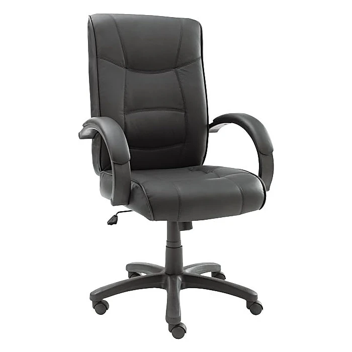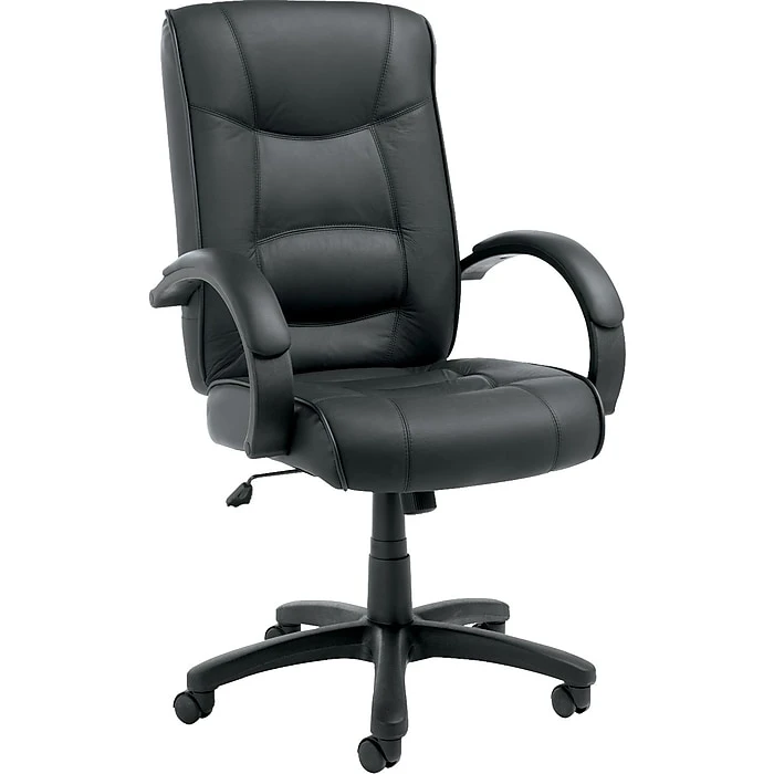 Increase productivity at your workplace with the black Alera Traditional Executive Chair that is ergonomically designed to provide comfort while working. For extra softness and cushioning, this high-back executive chair has high-quality leather upholstery. Its pneumatic seat height adjustment mechanism lets you alter the height to attain a comfortable posture. You can change the back angle with the help of the tilt mechanism that enables you to recline with ease while reading or working.