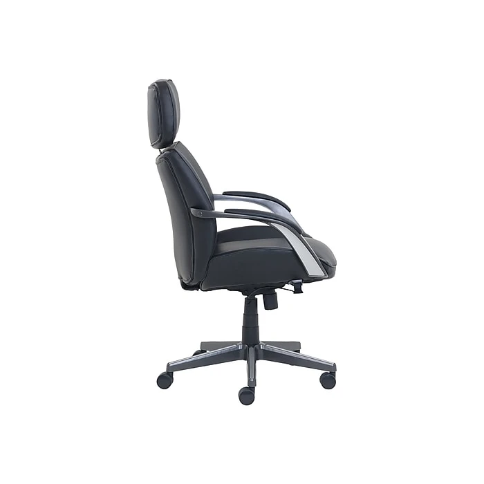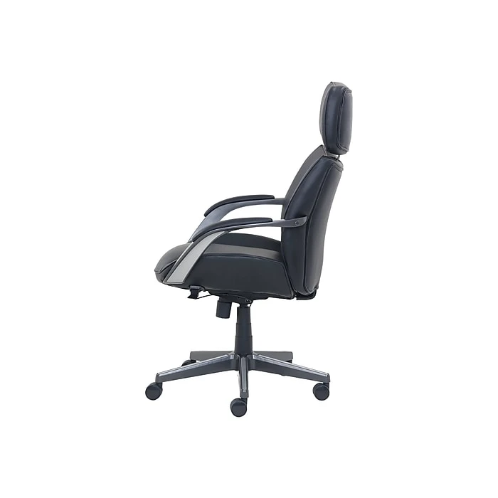 - Black with dark gray accents bonded leather upholstery is easy to maintain