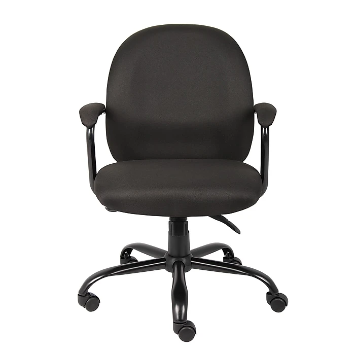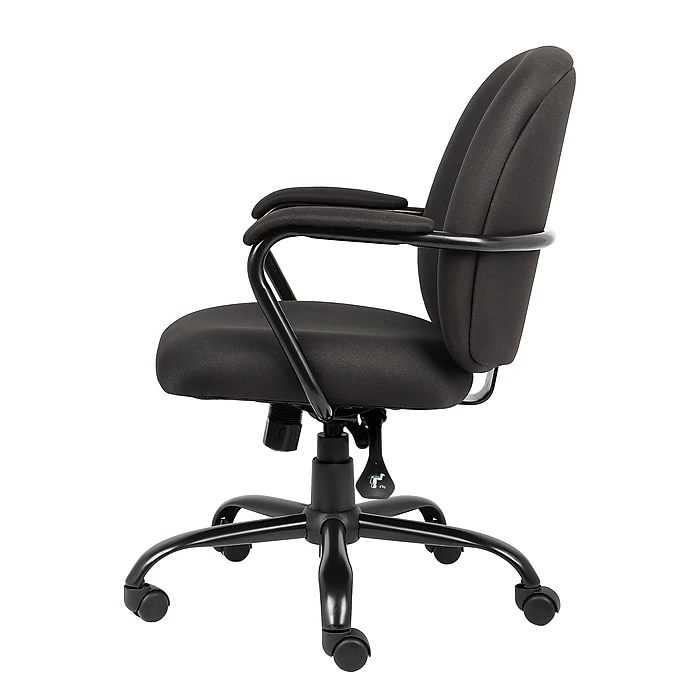 Create a simple yet modern look in your office or cubicle with this Boss heavy-duty task chair. The wider seat design and 300-pound weight capacity make this chair a smart option for people of virtually all sizes and builds, while the adjustable seat height options let you customize the setup to suit your personal preferences. Thick seat and back padding provides added support for busy days spent at your desk, giving you all-over comfort. This Boss heavy-duty task chair boasts a sturdy five-star base to remain stable on a variety of flooring surfaces, and the casters let you roll freely from one side of your office to the other.