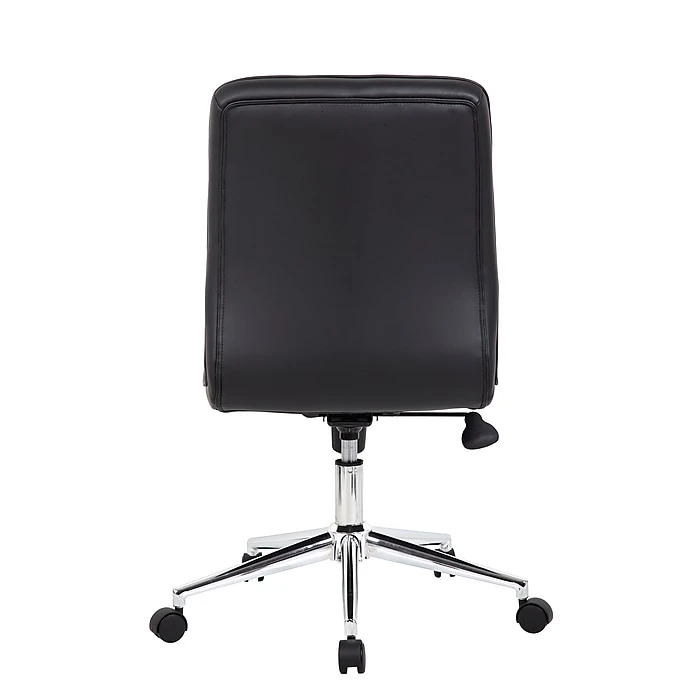 Enjoy a comfortable, stylish seating experience with this Boss Millennial modern office chair. The CaressoftPlus upholstery brings a luxurious feel to this chair, while the button-tufted accents add a handsome finishing touch. The polished five-star base and rolling casters make it easy to wheel your way from your desk to a nearby file cabinet or printer stand. This desk chair features soft, contoured padding for added cushion and support, so you can put in long hours without muscle stress and strain. With pneumatic seat height adjustment, spring tilt and upright tilt lock, this Boss Millennial modern office chair lets you customize the setup to meet your personal preferences.