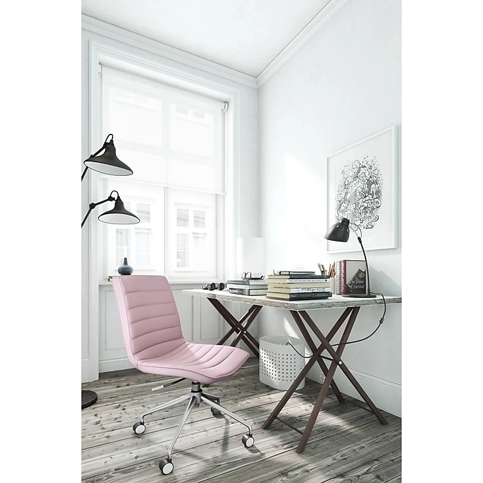 Add a luxe touch to your home office with this cute rolling desk chair. The boring office chair gets a serious upgrade with this stylish design. Equal parts cozy and trendy, this sturdy swivel chair doesn’t sacrifice one bit of comfort to bring classic, feminine style to your workspace. Contemporary stitched lines elevate the classic silhouette, making this task chair the ultimate addition to your everyday routine. Whether you’re decorating a small room or larger space, a teen bedroom or home office, this fabulously stylish, famously functional office chair expertly balances modern style with practical details. Get comfy in the tailored fabric seat, then tap into your creative potential when you’re hard at work. Parisian chic comes together with function and comfort to create a sophisticated workstation.