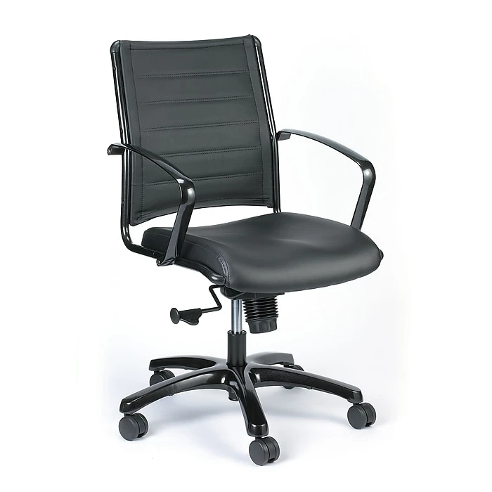 The Eurotech Seating Executive chair in an elegant black shade is perfect for any setup and looks neat and professional. For extra softness and cushioning, this executive chair has high-quality leather upholstery. Equipped with a knee tilt control, this chair allows you to keep your feet on the floor in a reclined position. Its base is equipped with caster wheels for easy mobility from one desk to another while working.