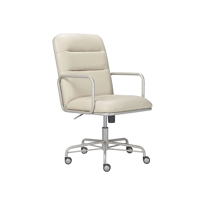 This comfortable office chair combines smart features with a mid-century modern design for a look that raises the style IQ in any work space. Created with sleek design in mind, the desk chair features rich executive-level Bonded leather upholstery and a tube metal frame for a modern industrial look. It’s as comfortable as it is cool with ergonomic cushions and a padded high back for added support. With its adjustable height, recline, smooth rolling casters, and 360-degree spin, this Finch Franklin computer chair gives you the versatility you need to multitask.