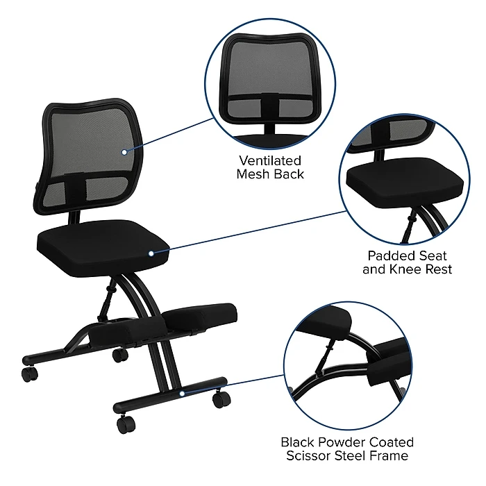 Flash Furniture Ergonomic Fabric Kneeling Chair, Armless, Black (WL3520)