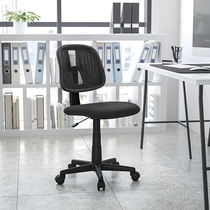 Tackle the workday with any challenge that comes your way on this snazzy desk chair. The cooling designer back features mesh material for exceptional airflow combined with gentle curved lumbar support. The Fundamental task chair will make an impressive footprint in your office with its cutting-edge structure. The innovate back pivots backward while leaning back for a comfortable resting period. Adjust your office desk chair with the pneumatic adjustment lever that controls the height of your seat. Effectively switch between tasks with 360° of swivel motion. Providing exceptional value for modern office, the Fundamental seating will afford you the opportunity to purchase seating for students and small businesses.