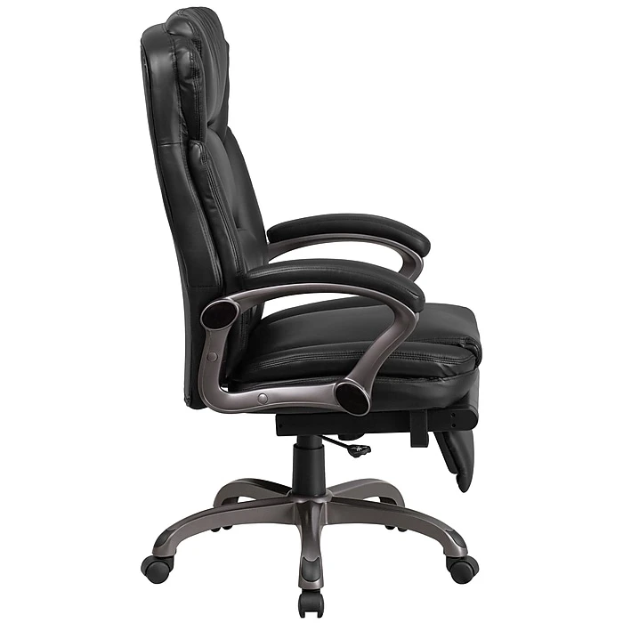 Get in a relaxed position with this Reclining Executive Office Chair by Flash Furniture! Chair reclines with a lever and has a slide-out footrest.