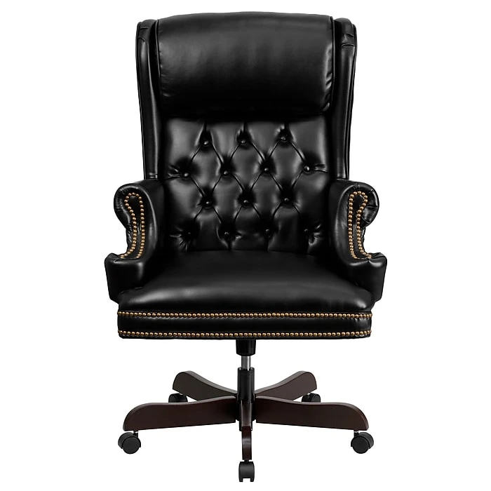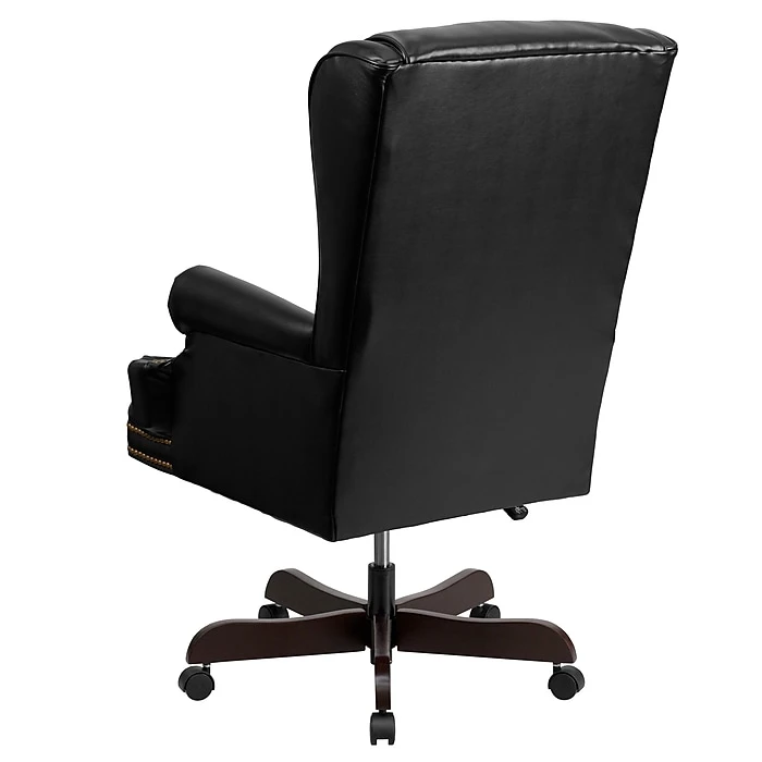 Versatile and elegant, the Flash Furniture Traditional Executive Chair in a black shade is an ideal addition to your office space. Upholstered with high-quality leather, this high-back executive chair adds a fresh look to your workspace. Its pneumatic seat height adjustment mechanism regulates the chair height and provides a balanced support to lower back. Equipped with a tilt function, this chair allows you to recline at a relaxed angle while reading or working. You can easily rotate the chair in all directions with its convenient swivel function.