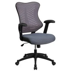 Stay cool throughout the workday with this Flash Furniture adjustable-arm executive chair, which features a breathable mesh back. The built-in lumbar support and contoured adjustable arms provide comfort for your upper body and lower back, while the adjustable tilt tension and tilt lock let you find the perfect angle of recline for work or relaxation. This chair comes with a pneumatic seat height adjustment lever, so you can move the seat up or down to match the your desk configuration. With a cushioned swivel seat and durable rolling casters, this Flash Furniture adjustable-arm executive chair lets you move freely throughout your work area.