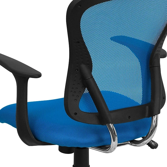 The Flash Furniture Contemporary Executive chair in an attractive blue shade blends with any decor and will be the perfect addition to your office space. Furnished with high-quality mesh upholstery, this mid-back executive chair adds a fresh look to your workspace. The chair has a lumbar support that conforms to your back curve for optimum comfort. Its pneumatic seat height adjustment mechanism feature lets you regulate the seat height to achieve a good sitting position.
