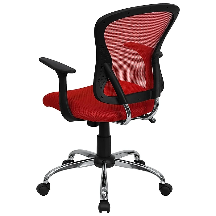 The Flash Furniture Contemporary Executive chair in an attractive red shade blends with any decor and will be the perfect addition to your office space. Furnished with high-quality mesh upholstery, this mid-back executive chair adds a fresh look to your workspace. The chair has a lumbar support that conforms to your back curve for optimum comfort. Its pneumatic seat height adjustment mechanism feature lets you regulate the seat height to achieve a good sitting position.