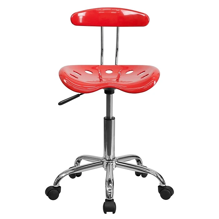 Bold, bright and modern, this Flash Furniture task chair boasts sturdy support in a height-adjustable design. A comfort-molded tractor-style seat offers a supportive place to sit while working. The bright cherry tomato finish adds a fun pop of color to any space. The Flash Furniture plastic task chair’s pneumatic seat-height adjustment makes it easy to tailor it to suit workers of almost any height.