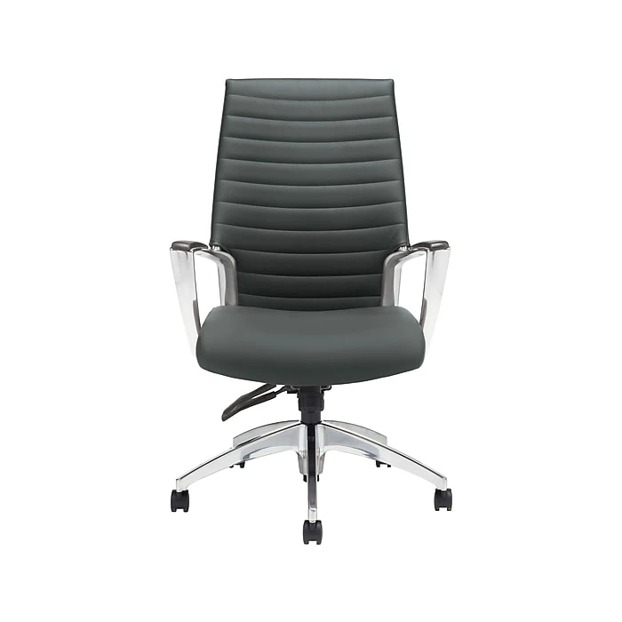 The Global Accord series features classic styling with finely detailed polished aluminum arms. The sling-style back is upholstered with rolled and pleated details, while the breathable mesh back promotes airflow and comfort while gently supporting the natural curve of the spine to reduce fatigue.