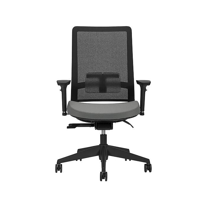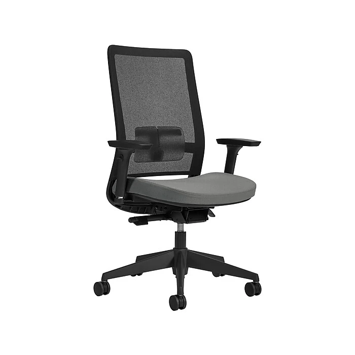 Factor seating recalculates the value equation for work chairs with adjustable lumbar support, weight-sensing synchro tilt mechanism, and adjustable arms. The chair features automatic tilt tension, pneumatic seat height, sliding seat depth, and multiposition tilt lock.
