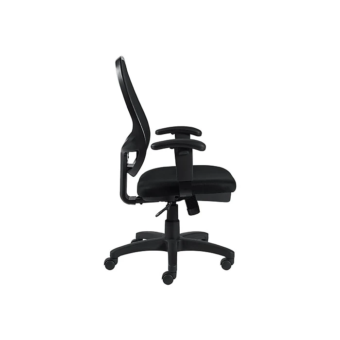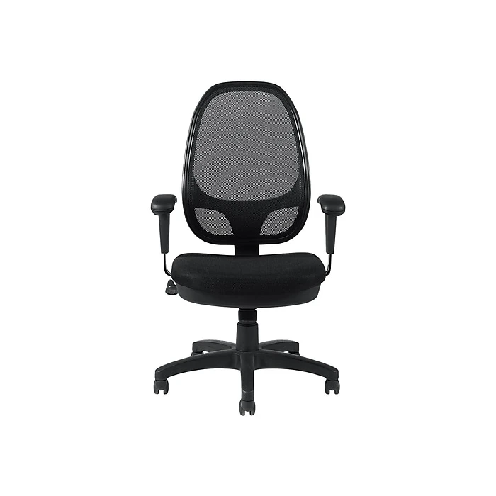 Create a more inviting seating arrangement in your workspace with this Office to Go high-back managers chair. With a scuff-resistant molded base and twin-wheel carpet casters, this office chair glides effortlessly across your floor. The breathable mesh upholstery and seat back allow for better air circulation, keeping you cool throughout the workday. Single-position tilt lock, center-tilt and tilt-tension control let you recline back in the seat at the perfect angle, while the pneumatic height-adjustment lever makes it easy to raise or lower the seat as needed. Boasting contoured height-adjustable arms, this Office to Go high-back managers chair provides added support for your shoulders, arms and hands.