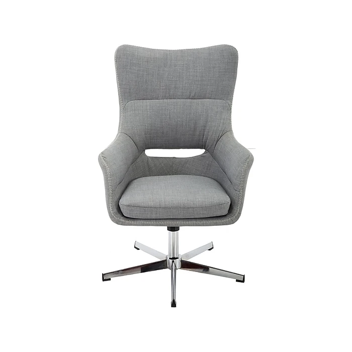 Add a modern flair to your office space with the Hanover Harrison stationary office chair. An extra-wide backrest adds maximum comfort while also giving the user an executive appearance. The modern chrome base stands securely in place while offering a smooth 360-degree spin and effortless seat adjustments. The Harrison design can be used outside the office as well. Its solid neutral tone fabric integrates seamlessly into most color schemes and works as a nice accent chair that will bring modern vibes to any living room, kitchen, or lounge space. Professionalism, comfort, and style come together perfectly with this trendy office chair from Hanover.