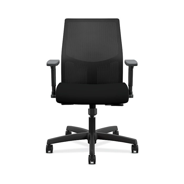 We all want comfort from our office chair. But what about style? Customizable control? Advanced features? You’ve got them all in this Ignition low-back task chair with a ilira-stretch mesh back. The synchro-tilt control mechanism with seat slider reclines the back and seat in the perfect ratio to give you a natural posture, whether sitting upright or leaning back. The breathable ilira-stretch mesh back cradle your spine and increases airflow. Height- and width-adjustable arms provide a custom fit. When you want more control over your comfort, you want an Ignition ilira-stretch mesh back chair. Very easy assembly required. ilira-stretch mesh back, seat fabric and frame colors are Black.