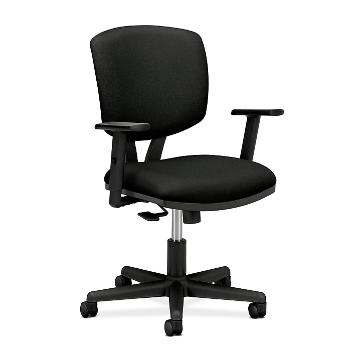 Volt seating from HON offers upscale style, full-scale comfort and impressive quality at a surprisingly affordable price. This low-back chair with synchro-tilt has generous seat and back cushions that are contoured for comfort while performing active office work. Height-adjustable arms are included. Seat and back upholstery color is Black.