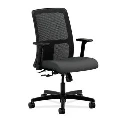 Ignition seating from HON fits your body, your work and your space. This mesh low-back chair with center-tilt features adjustments not often found in its category, and is excellent for time-intensive activities. Its high recycled content reduces wood waste. Warranted for users up to 300 lbs. Height- and width-adjustable arms are standard for added comfort. Seat upholstery color is Iron Ore, and mesh, frame and base color is Black.