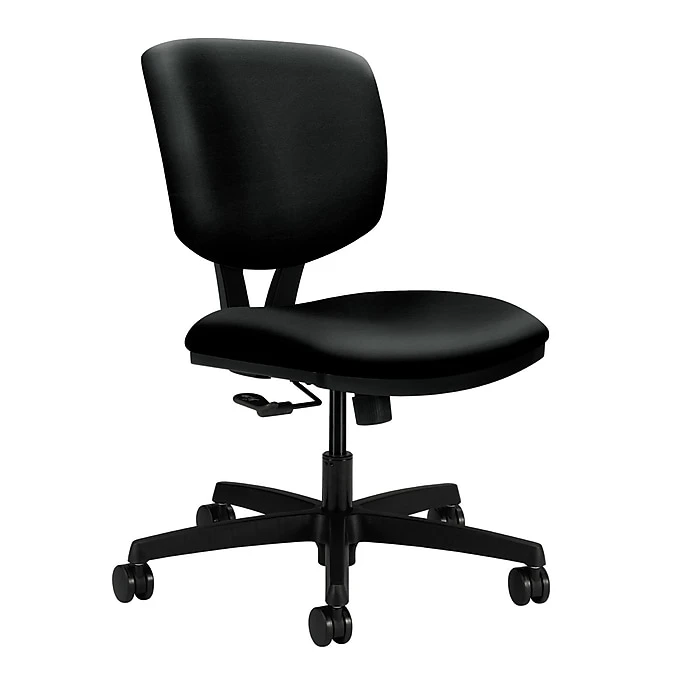 Volt seating from HON offers upscale style, full-scale comfort and impressive quality at a surprisingly affordable price. This low-back chair with center-tilt has generous seat and back cushions that are contoured for comfort while performing active office work. Height-adjustable arms can be ordered separately. Seat and back upholstery color is Black.