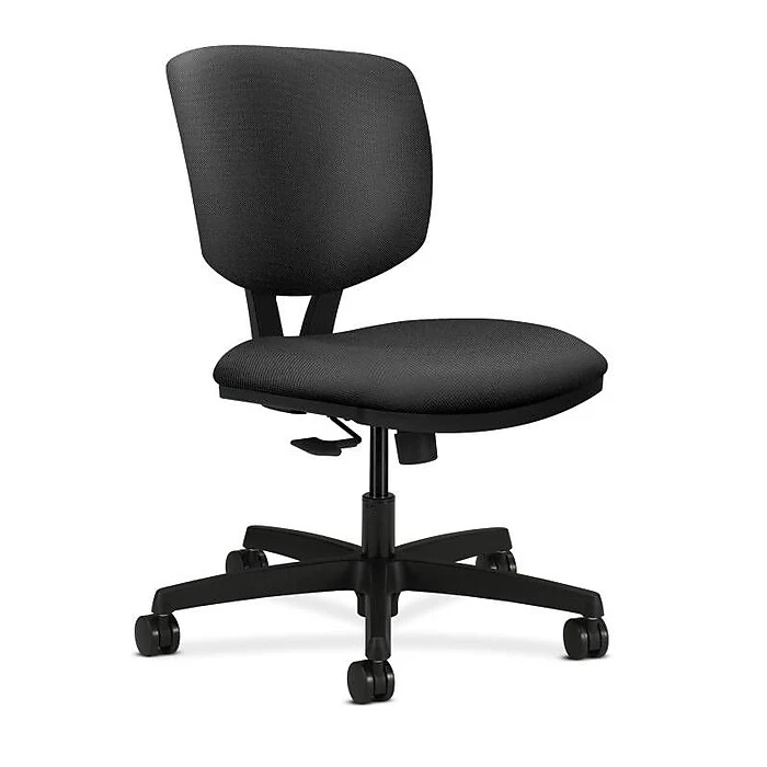 Volt seating from HON offers upscale style, full-scale comfort and impressive quality at a surprisingly affordable price. This low-back chair with synchro-tilt has generous seat and back cushions that are contoured for comfort while performing active office work. Height-adjustable arms can be ordered separately. Seat and back upholstery color is Onyx.