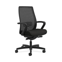 Endorse is The HON Company’s most adaptable seating collection. This mesh, mid-back task chair features adaptable comfort geometry, plus the added benefit of an easy-to-use built-in lumbar adjustment for exceptional lower back support. Synchro-tilt prom otes circulation and spinal alignment, and the standard pneumatic height and seat glide controls accommodate people of varying heights. Fixed arms help support the forearms and shoulders. The ilira -stretch back material provides natural ventilation. Wa rranted for users up to 300 lbs. Frame and back mesh color is Black and seat upholstery color is Black.