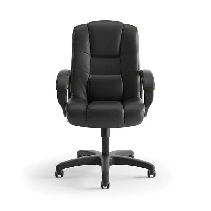 Cream-colored contrast stitching, an overstuffed back and padded loop arms give this chair an upscale feel at a compelling price. Seat and back upholstery color is Black.