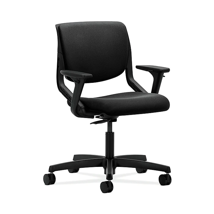 HON Motivate seating transforms any space into a dynamic environment. This task chair incorporates both great style and good ergonomics. The flex-back motion helps support the spine. Shell color is Onyx, back and seat upholstery color is Black, and base is Black.
