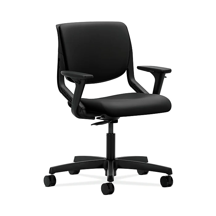 HON Motivate seating transforms any space into a dynamic environment. This task chair incorporates both great style and good ergonomics. The flex-back motion helps support the spine. Shell color is Onyx, back and seat upholstery color is Black, and base is Black.