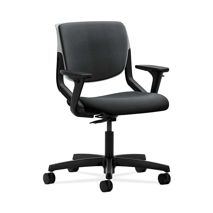 HON Motivate seating transforms any space into a dynamic environment. This task chair incorporates both great style and good ergonomics. The flex-back motion helps support the spine. The shell color is platinum, the back and seat upholstery are onyx, an d the base is Black.