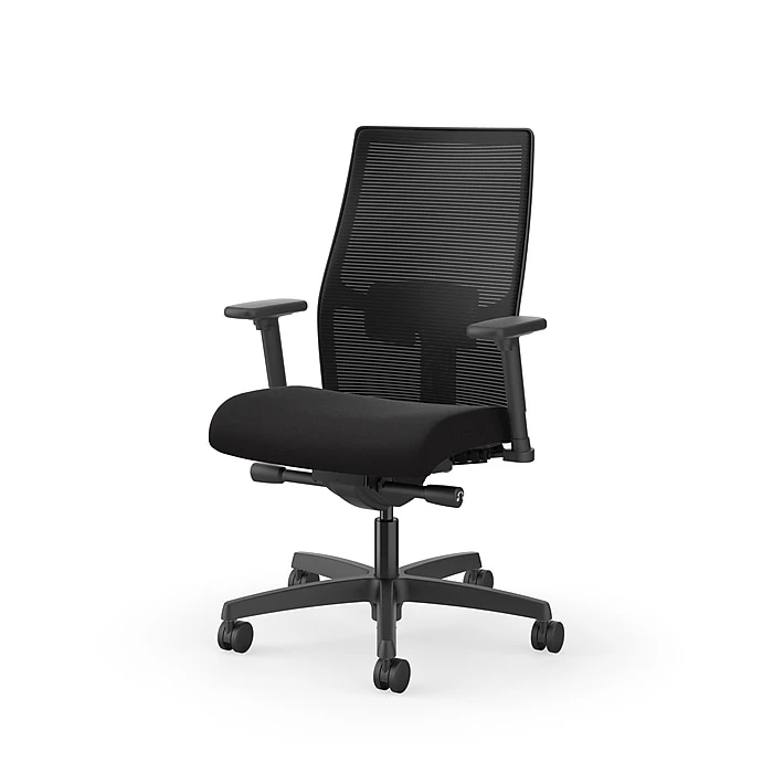 The advanced synchro-tilt control mechanism is the best HON has to offer, and reclines just the way you like. Height- and width-adjustable arms and adjustable lumbar support create the customizable comfort that perfectly fits you. A breathable 4-way stretch mesh back lets the air, and the comfort, flow freely. When you’re ready to take the next step up in task seating, look no further. Very easy assembly. 4-way stretch mesh back color is Black, seat fabric color is Black, and frame color is Black.