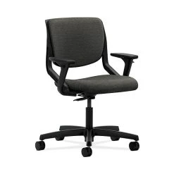 HON Motivate seating transforms any space into a dynamic environment. This task chair incorporates both great style and good ergonomics. The flex-back motion helps support the spine. Shell color is Onyx, back and seat upholstery color is Onyx, and base is Black.