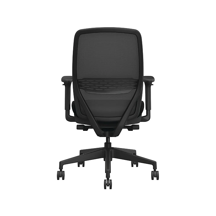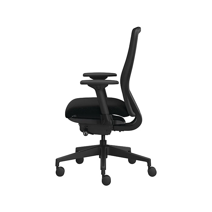 HON Nucleus seating is constructed from innovative materials to deliver comfort from the inside out. This chair also features a four-way stretch knit back that conforms to your spine. The synchro-tilt and four-position locking further promote proper back alignment. Height- and width-adjustable arms are standard for added comfort.