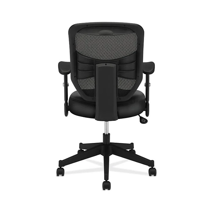A waveform seat and height-adjustable padded arms give this chair an upscale feel at a compelling price. Seat upholstery is Black SofThread leather mesh. Back mesh, frame and base color is Black.
