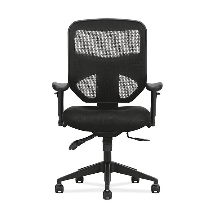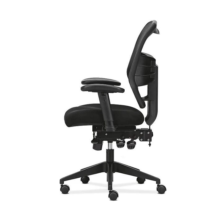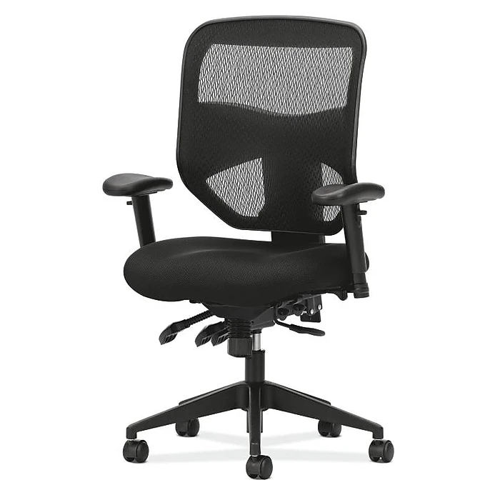 - Deeply contoured seat and back and adjustable arms provide outstanding all-day support for task work