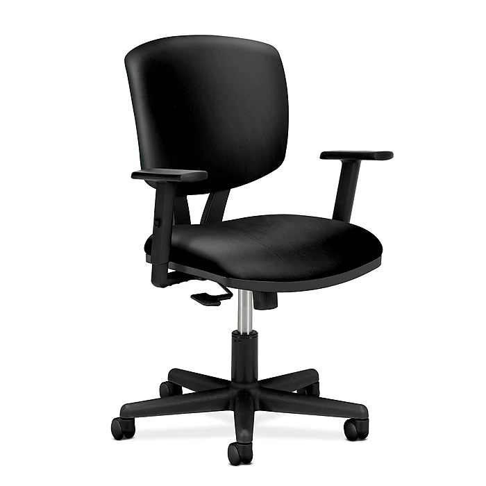 - The HON mid-black task chair has five wheels that roll on carpets, making repositioning easy