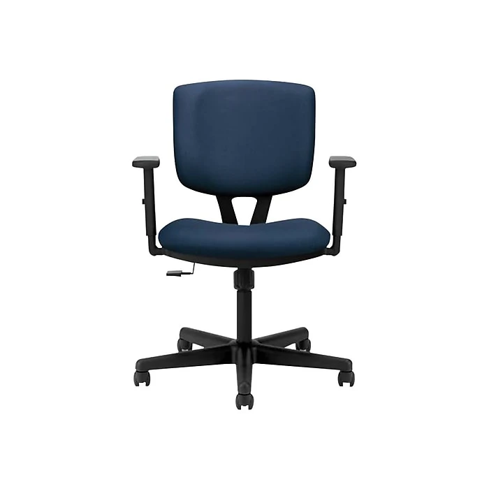 Fill your office seating demands with this lower-cost HON Volt center-tilt mid-back fabric task chair. Constructed with durable stain-resistant fabric to withstand years of heavy use, this economical option makes the most of your long-term budget. The seat height control and center-tilt mechanism provide easy adjustment for individualized comfort, while the seat and back are designed to accommodate both larger and smaller users. The tilt-tension adjustment controls the rate of recline, and the tilt lock fixes the recline in place. This HON Volt center-tilt mid-back fabric task chair comes standard with 360-degree swivel capability and five casters on a stable base for easy movement between tasks.