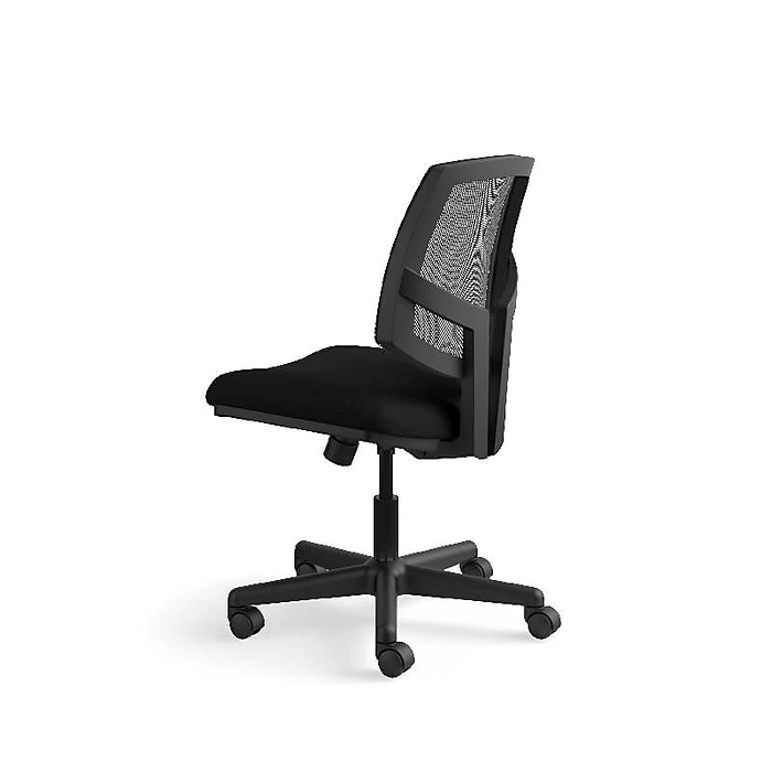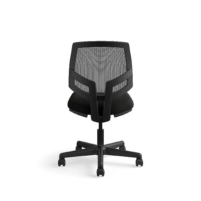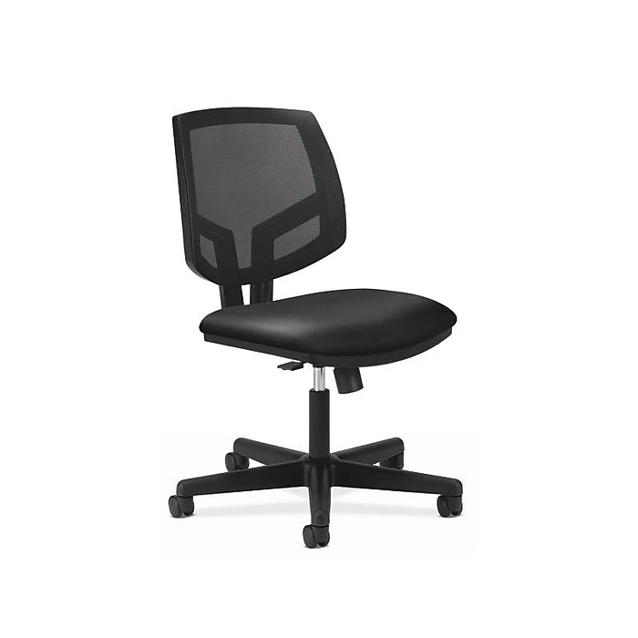 Manage business in comfort with this simple HON Volt mesh-back task chair. The tilt tension and tilt lock deliver controlled reclining, while the synchro-tilt mechanism reclines the back at a higher ratio than the seat for proper back alignment. Crafted with a breathable mesh, the back permits airflow to keep you cool throughout the busy day. The pneumatic seat-height mechanism allows easy movement to your preferred work level, while the 360-degree swivel lets you rotate quickly from task to task. Optional adjustable arms can be added to this chair for additional upper body support. This HON Volt mesh-back task chair has a wide stable base with five casters for safe, swift movement around the office.