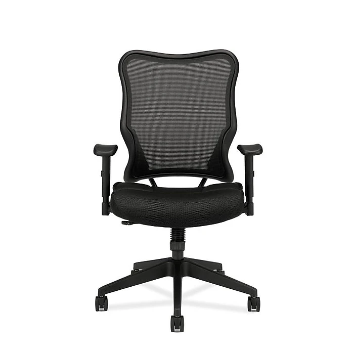 Black sandwich mesh seat and height-adjustable arms give this chair an upscale feel at a compelling price. Seat upholstery color is Black and back mesh color is Black.