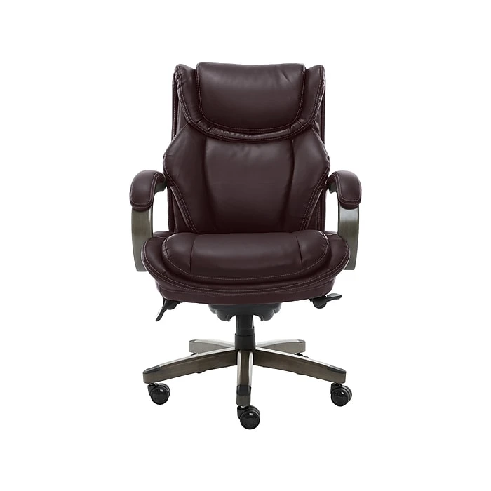 This La-Z-Boy Harnett executive office chair is designed for comfort by offering superior ergonomic features, with unique style. The chair uses ComfortCore, an advanced foam layering system that offers zone-based support through strategic cushion mapping. This executive office chair features soft support at the front of the cushion, firmer support at the back of the cushion, and poly fiber fill comfort top layer for supreme comfort.