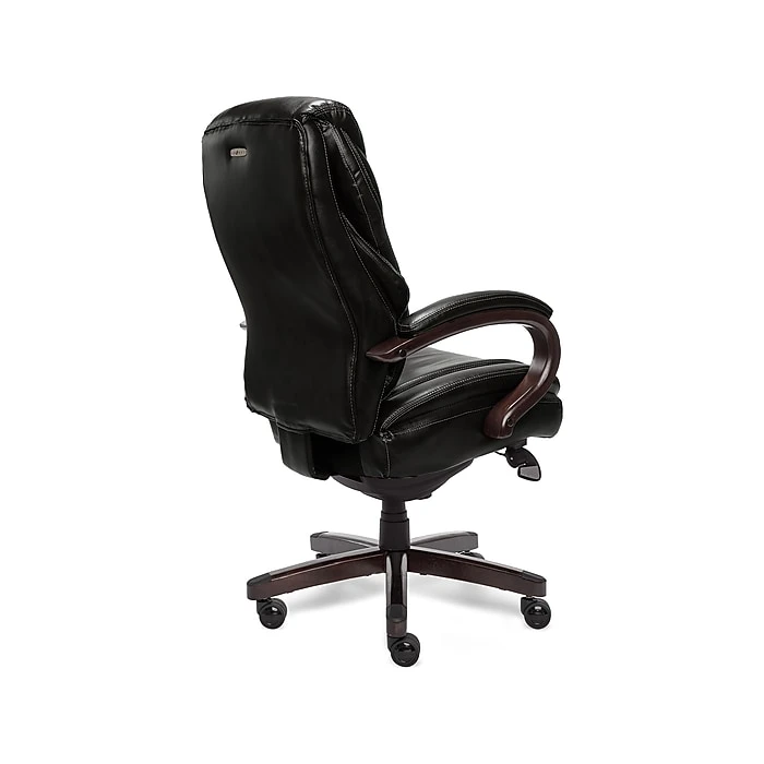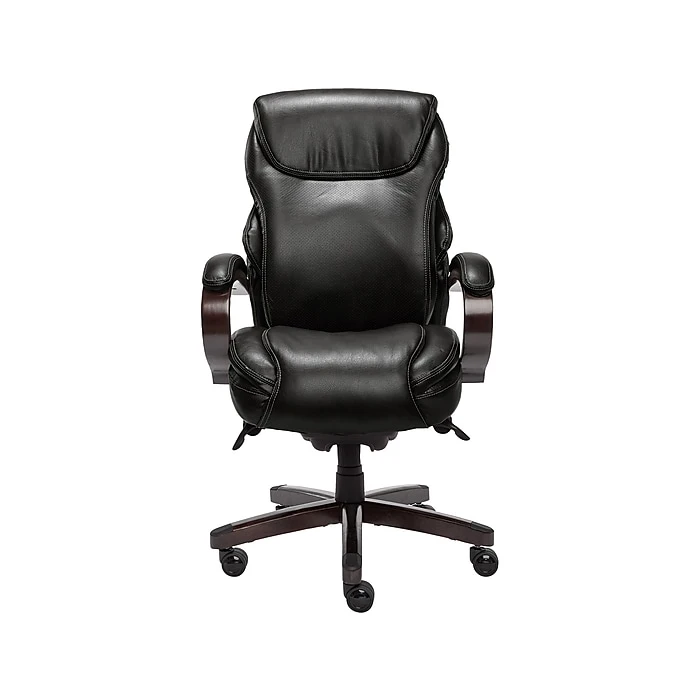 Trusted Quality and Craftsmanship From a trusted brand known for quality, traditional craftsmanship and comfort, the La-Z-Boy Hyland ComfortCore Traditions AIR Technology Executive Office Chair delivers advanced performance for exceptional support and comfort at work and play. Superior Comfort Technology The ComfortCore Plus with Memory Foam advanced layering system offers unique zone-based support, placing cushioning in the areas you need it most. The strategically-assigned plush body pillowing and padded headrest on this office chair combine to provide neck support and minimize pressure points for relief from discomfort caused by prolonged sitting. Ergonomic Design and Lumbar Support Technology This Wellness By Design series La-Z-Boy office chair uses flexible AIR Lumbar Technology that pivots and conforms the lumbar area according to your movement, helping to improve posture, reduce discomfort and provide superior back support. This ergonomic chair is fully adjustable, letting you control height, tilt and lift to suit your needs for customized positioning and optimized body alignment. Built to Last This executive office chair features a thicker plywood subcore, reinforced back bar and heavy-duty castors for durability you can count on for all your day-to-day activities. Traditional Style, Contemporary Functionality Crafted with wood components, this high-back office chair with hand-sculpted arms is upholstered in soft bonded leather to create an elegant blend of traditional style and modern performance that is ideal for any office, home or entertainment space.