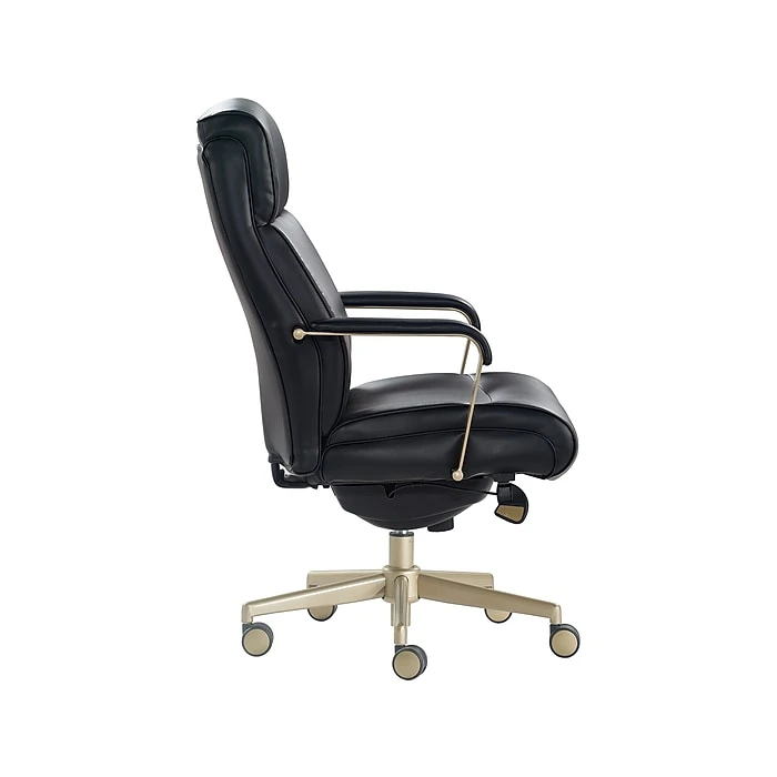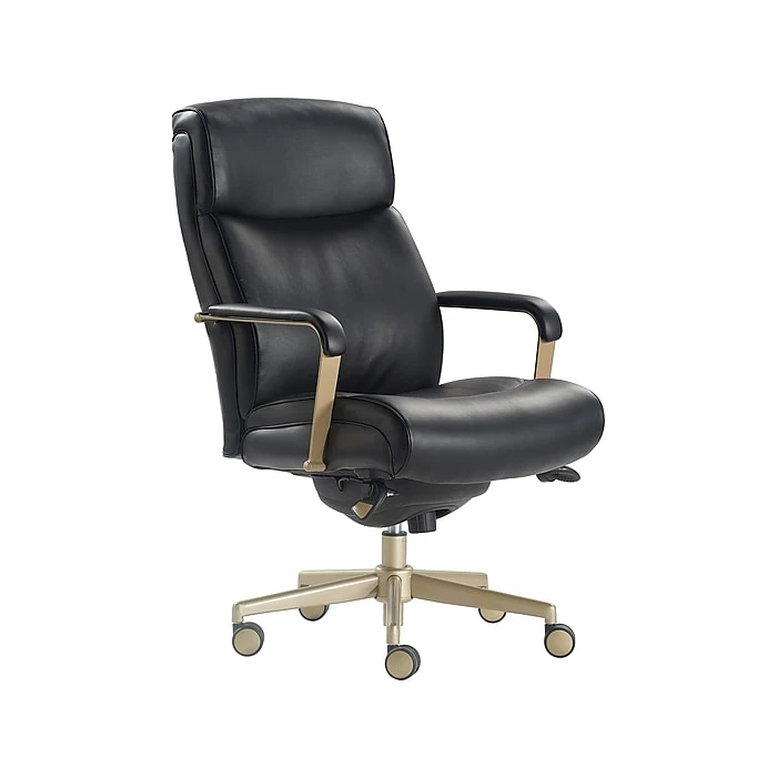 Fitting with your modern lifestyle, the Melrose executive office chair showcases clean lines, contemporary color, and overall sensibility. Smooth bonded leather offers sleek seating while maintaining a high-end look. Set on a copper-finished wheeled base, this office chair moves with ease from a day of work at your desk, to your living room for a night of gaming. The ergonomic design, full cushion foam, and adjustable lumbar support keep you comfortable and energized through every moment. Ergonomic and adjustable, this La-Z-Boy office chair allows you to control the height and tilt to suit your sit positioning and give you an optimized body alignment. La-Z-Boy office chairs are designed to put your comfort first with quality that’s built to last, so your work day is always engaged and productive.