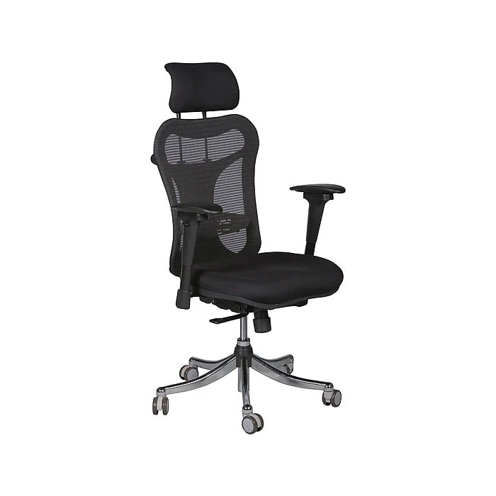 Provide whole-body comfort for marathon work sessions with this MooreCo Ergo Ex ergonomic executive chair. A padded headrest provides extra support for your head, neck, and shoulders, while the breathable mesh back lets air circulate freely as you work to keep you cool. The adjustable-height armrests swivel back and forth as well as from side to side, providing greater freedom of movement. Adjustable lumbar support gives your back a break without the need for an extra pillow or cushion. Use the customizable seat depth and height to find the perfect configuration for your body. With a sleek, curved five-star base and rolling casters, this MooreCo Ergo Ex ergonomic executive chair ensures effortless movement throughout your office.
