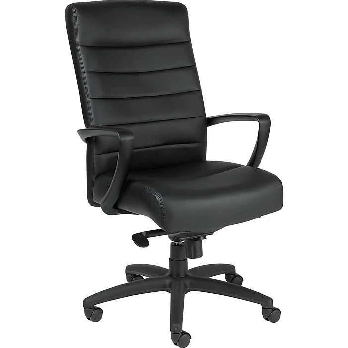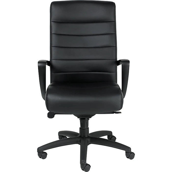 The Eurotech Manchester Contemporary Executive Chair in an attractive black shade blends with any decor and will be the perfect addition to your office space. For extra softness and cushioning, this High-Back executive chair has high-quality leather upholstery. Equipped with a knee tilt control, this chair allows you to keep your feet on the floor in a reclined position. This chair is designed to offer lumbar support by conforming to the curve of your body.