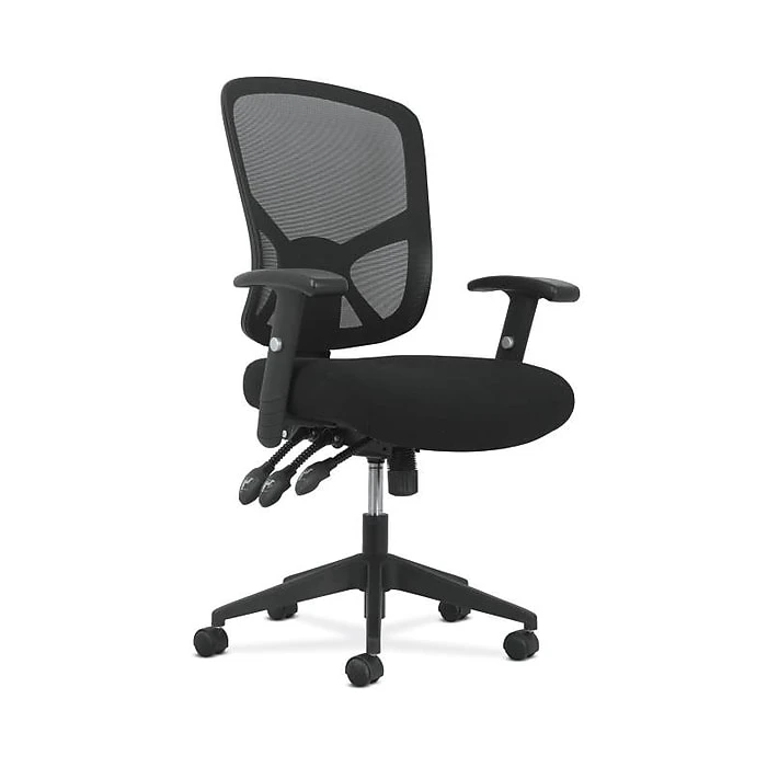 The 1-Twenty-One high-back task chair offers maximum comfort, support and functionality. Our product is engineered for performance, with features that include a breathable mesh back, durable and soft sandwich mesh, adjustable seat height, adaptable ratcheting back, and adjustable arms that conform to your body. The high-performance asynchronous control lets you fine-tune your posture to address any task in ergonomic comfort. The comfort, stylish look, and price point of this chair make it a perfect addition to the office, whether at work or at home. This chair meets or exceeds industry standards for safety and durability, and is backed by a limited 3-year warranty.