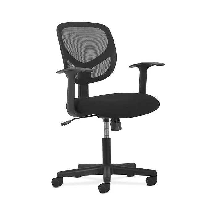 The 1-Oh-Two mid-back task chair features a breathable mesh back and durable sandwich mesh seat. It offers simple and intuitive controls such as pneumatic seat height adjustment, 360-degree swivel, tilt tension and tilt lock for added customizability and comfort. This chair also includes sculpted arms which provide forearm support. The comfort, stylish look, and price point of this chair make it a perfect addition to the office, whether at work or at home. This chair meets or exceeds industry standards for safety and durability, and is backed by a limited 3-year warranty.