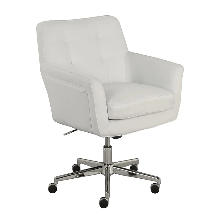 The all-American office chair just got an upgrade! Meet the Serta Style Ashland Home Office Chair. From the chrome-finish base to the memory foam cushions, this beauty is destined to become a classic in your office or home office. Customize your workspace with durable rolling casters that smoothly glide from task to task. With strong, elegant lines and soft upholstered fabric, the Ashland Home Office Chair from Serta can get you through the workweek with style and comfort!