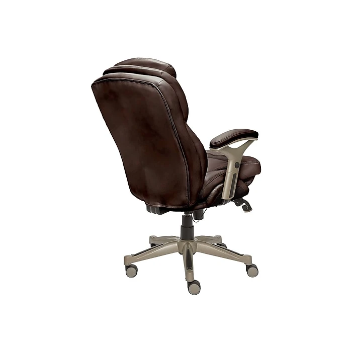Imagine an office chair that helps promote strength and flexibility in your back. That’s the Serta Works ergonomic executive office chair with Back in Motion technology. This feature-rich, performance-focused chair helps its users become more productive and efficient by maximizing lower back support and comfort while seated. The Back in Motion active seat technology swivels the lumbar forward like the pelvis tilt exercise, promoting strength and flexibility in your core. The push-button adjustable armrests and pneumatic height adjustment can be customized to find the right fit for you. And the multilayered cushions are comfortable yet supportive, so you’ll feel refreshed and rejuvenated, even after a long day.