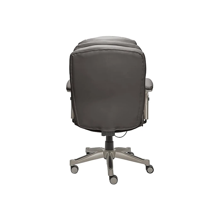 Help promote strength and flexibility in your back while you work with the Serta Back in Motion Executive Office Chair. This ergonomic office chair helps users become more productive and efficient by maximizing lower back support and comfort while seated. Its unique Back in Motion Active Seat Technology swivels the lumbar forward, providing the same effects as a pelvic tilt exercise by promoting spinal movement and flexibility in your core. Push-button adjustable armrests and pneumatic height adjustment allow the leather office chair to be quickly and easily customized to find the right fit for you. The multilayered cushions are soft yet supportive, so you’ll feel refreshed even after a long day.