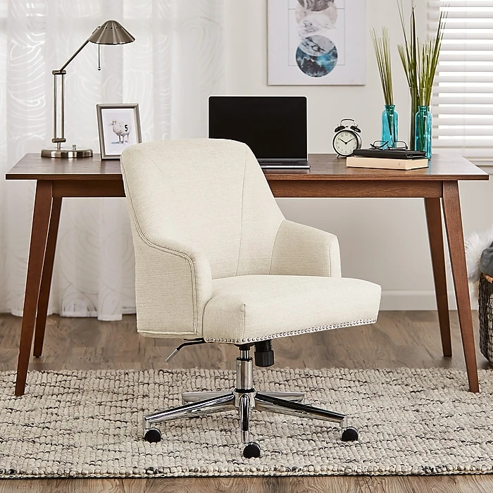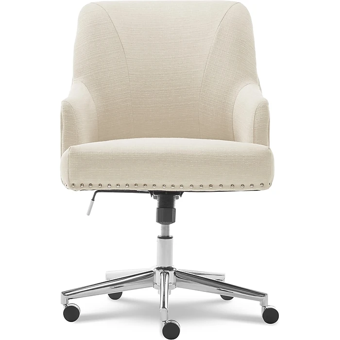 Add a touch of modern elegance to your space with a design that is equally functional and stylish. This expertly-wrapped, neutral design is height-adjustable to tailor your professional space. The chrome-finished, stainless-steel stand offers you 360-degree swivel and casters for easy mobility. The memory foam seat and arms with pocket coils feature renowned Serta comfort, perfect for home or office use.